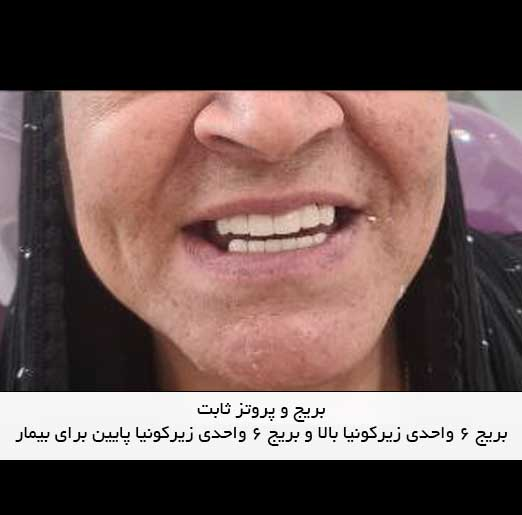 بریج و پروتز ثابت -ریج ۶ واحدی زیرکونیا بالا و بریج ۶ واحدی زیرکونیا پایین برای بیمار